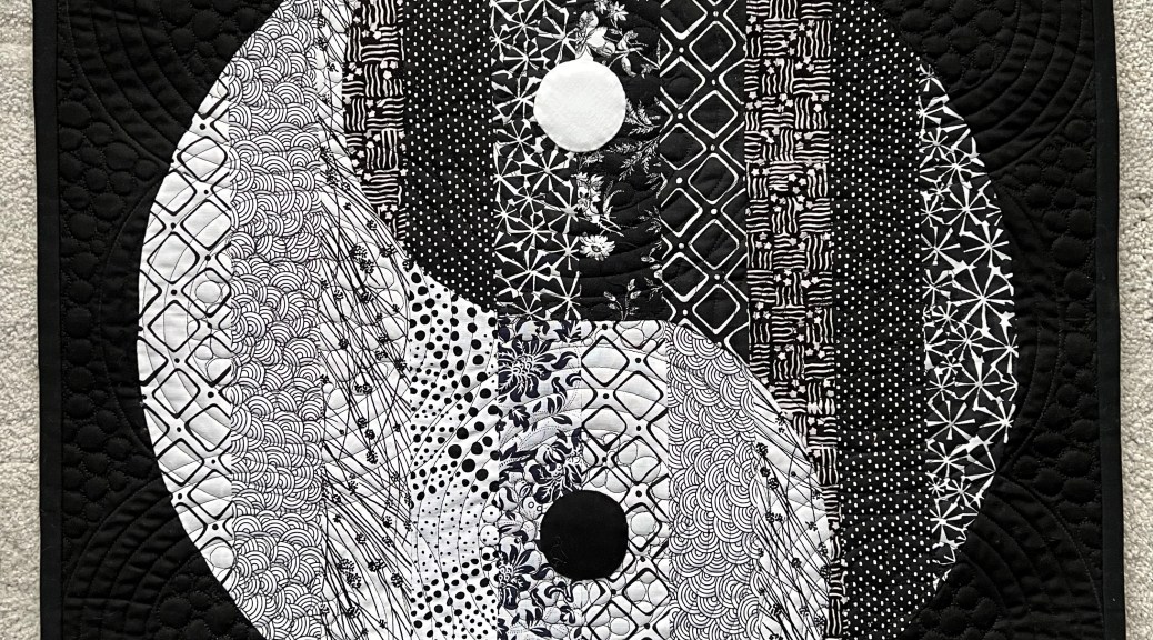 ___ Challenge for “Harmony” (Sacred Threads, Broadway gallery in northern Virginia on exhibit). Finished, submitted, juried in. (“It’s a Yin Yang Thing”)