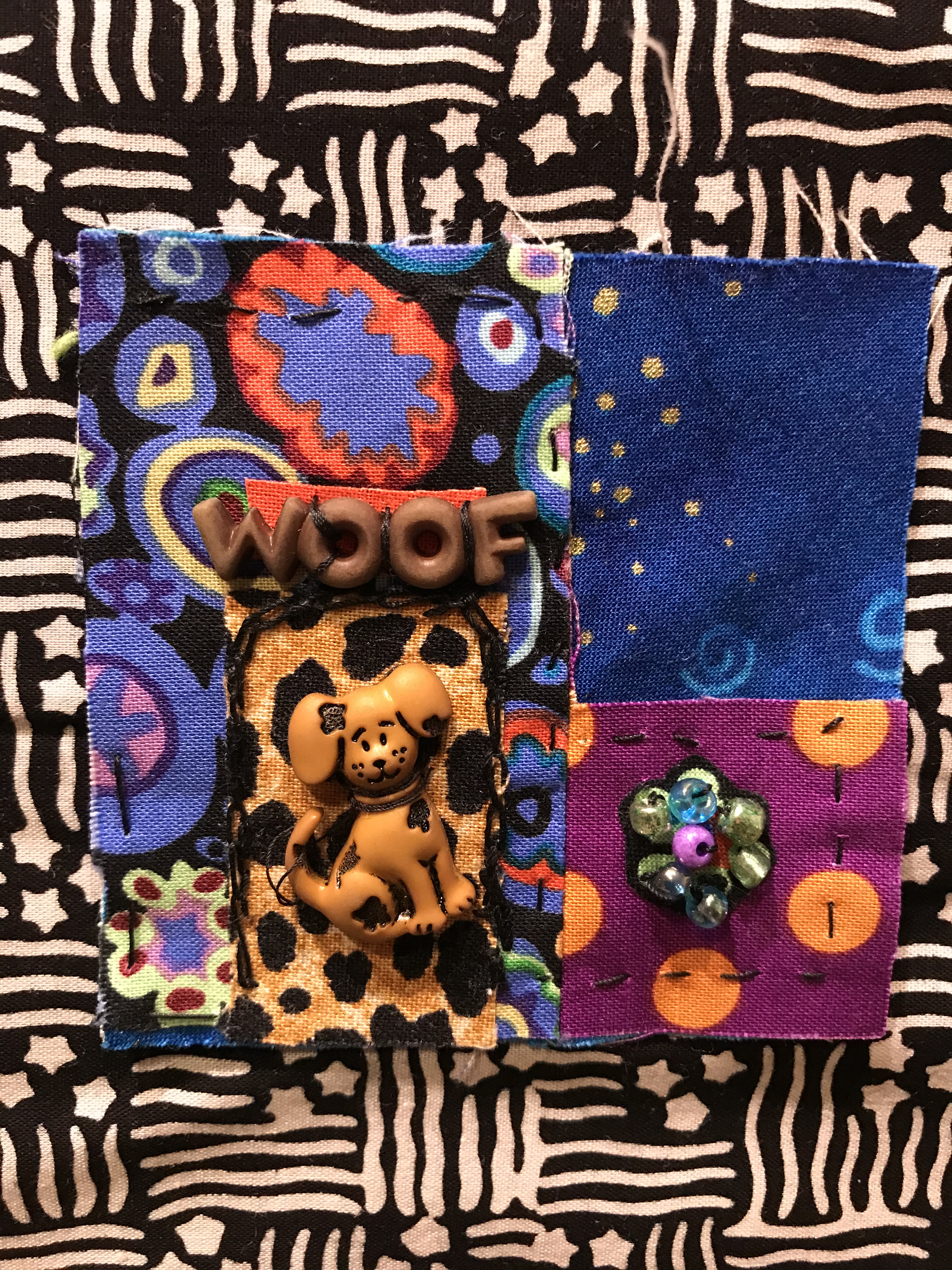 Set the background and design by day and bling by night is the name of the game for these tiny quilted gems. Each day, I head to the computer to check out the low temperature of the previous day which sets the background for that day’s project. This morning, I missed moving into the teal family by 1degree! It’s getting warmer slowly but surely. This is actually an interesting way to see one move into spring (besides seeing the daffodils begin to open and crocus in bloom). As we began the confinement period due to the COVID19 pandemic, I began to realize that I wanted to have these blocks represent what was happening in the homes. As you look inside the windows of each, most show people doing things from getting dressed to pondering the world outside. We are all finding ways to adjust.