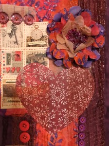 Just when I thought I couldn’t get any more excited about being a finalist in a quilt challenge, I learned that my entry in the Hoffman Fabric Challenge was also selected. When I first saw their fabric for 2016, the digital butterflies, I wanted to work with all the variations so acquired pieces from each. Set in a convergence style, then cut and shaped to add the dimensional butterflies and taggies with strands of sparkling beads and crystals, it shows such joy that I smile every time I look at it. Quilting uses different colors of Aurifil threads with “Joy swirl” patterns and pebbles to show fun, movement and a pathway. This art piece is on it’s way to California now for final judging and the amazing opportunity of being on tour throughout the country for the next year. ‘Way Way cool too!! Now what should I work on???